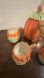 Vintage Fitz & Floyd Omnibus Halloween Pumpkin Pitcher 1989 and 4 matching cups