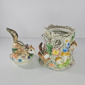 Vintage Fitz & Floyd Woodland Spring Chipmunk Squirrel Small Canister Jar *Chip*