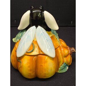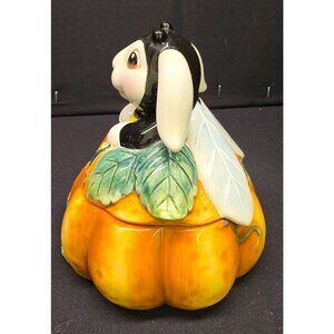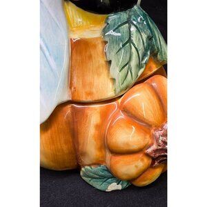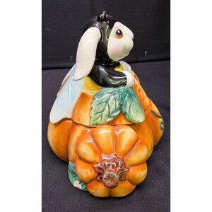 Vintage Fitz and Floyd Halloween Bunny Blooms Lidded Ceramic Pumpkin Container
