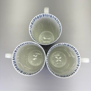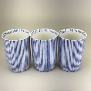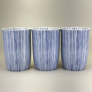 Blue Glaze Cobalt Blue and White Striped Porcelain 4 1/8” tall Coffee Tea Mugs Cups
