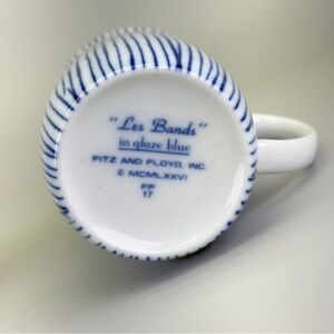 Vintage Fitz and Floyd Les Bands Porcelain Blue and White Striped Mugs