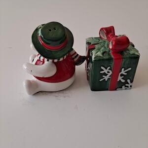 Vintage Fitz and Floyd Snowman Gift Box Christmas Holiday Salt & Pepper Shaker