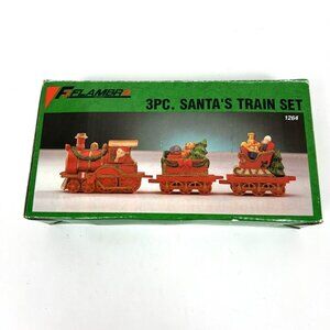 Vintage Flambro 3 Pc Santa’s Train Set in a Box Christmas Mantel Shelf Decor
