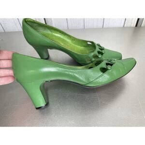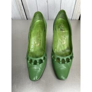 Vintage Flamenco Of Spain 6.5B Leather Studded Green Block Heel
