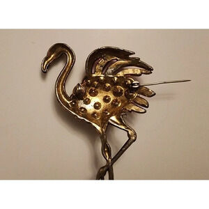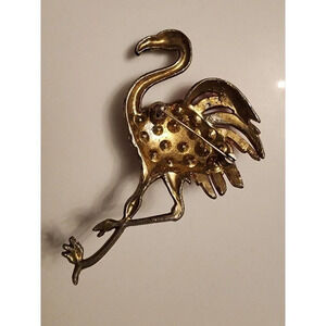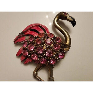 Vintage Flamingo Brooch Pink Pink Rhinestones & Enamel Gold Tone