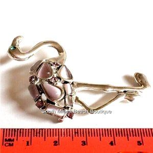 Vintage Flamingo Pin Brooch Silver Plated Purple Cats Eye Crystal Bird Ostrich