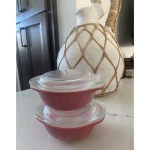 Vintage Flamingo Pink Pyrex 080 Individual 8oz Casserole Dish w/Glass Lid 2 Set