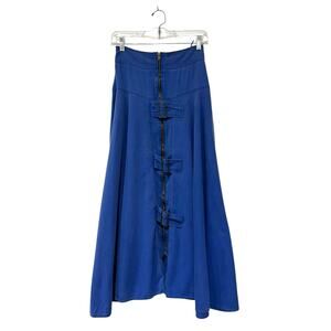 Vintage Flamingo Yoked Skirt Blue Full Midi 100% Cotton Zipper Buckles W26"