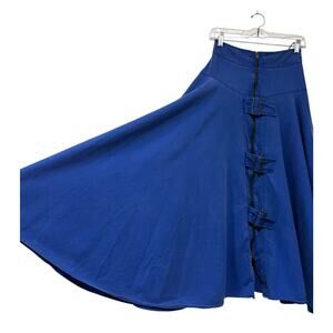 Vintage Flamingo Yoked Skirt Blue Full Midi 100% Cotton Zipper Buckles W26". Preowned. Great vintage condition. No tears or stains. Comes from smoke free home. Ships out fast!