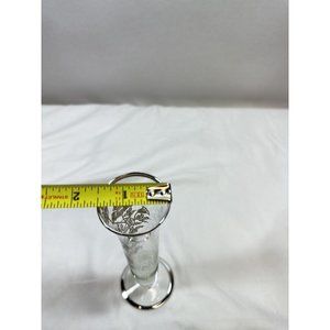 This stunning vintage bud vase from Silver City Flanders features a beautiful sterling silver overlay poppy pattern on clear glass. The vase stands at 6 3/4 inches tall making it the perfect size for displaying a small bouquet of flowers or as a standalone decorative piece.