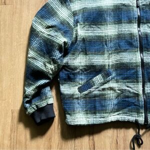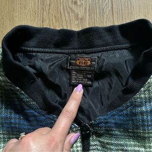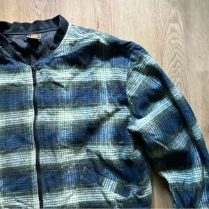 Vintage flannel jacket. Fully lined, full zip. Bomber style fit. Waist has a tie so it can be pulled tight to fit you. Very comfortable and surprisingly soft. In good condition