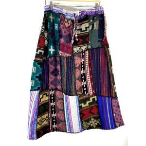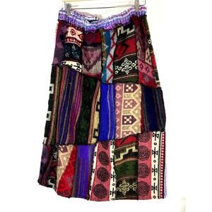 Vintage Flannel Patchwork Midi Skirt Soft Boho Womans Medium 30 Goblin Fairy Art