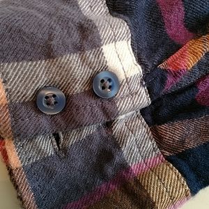 Super soft, boyfriend fit flannel shirt from Arizona.19" armpit to armpit. 23" shoulder to hem. Sleeves are 21 1/2". Size large, but fits small.