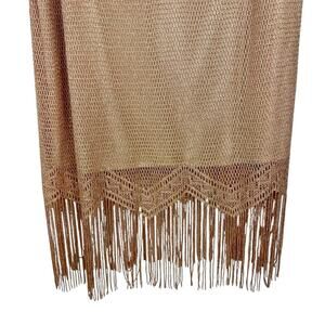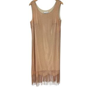 Vintage Flapper Dress Champagne Pink Tasseled Hem Midi Art Deco Great Gatsby 14W