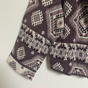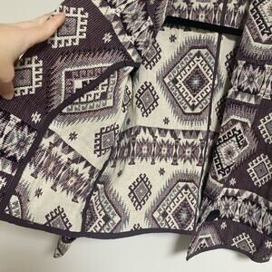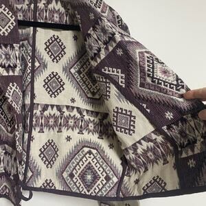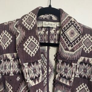 Dusty rose/purple and off white tapestry blanket jacket.