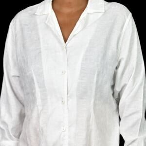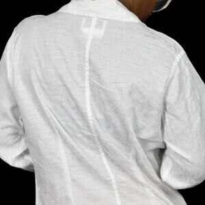 Vintage Flax Cotton Shirt White Collar Button Down Oversized Jacquard Medium