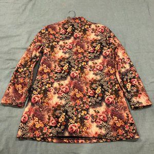 This was only worn once. The fleece on the interior looks brand new (never washed). Super thick scuba material. Has two pockets and is super cute and comfy for winter months. Can be stylized with a cute cardigan.