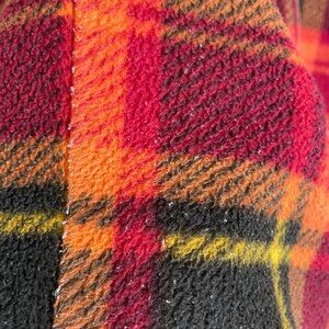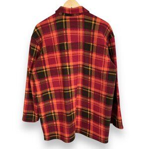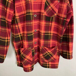 Vintage Fleece Jacket Shirt Shacket Plaid Red Orange Autumn Fall Medium Pockets