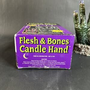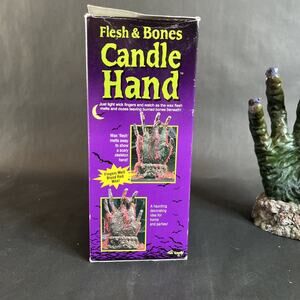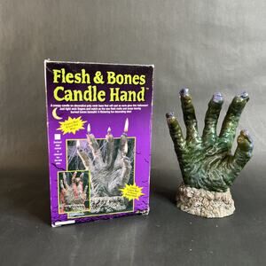flesh and bones, skeleton candle, halloween decor, magic blood drip, fun world candle, spooky wax hand, vintage halloween, horror prop, scary candle, haunted house, 1990s candle, creepy decor, bone hand candle