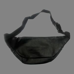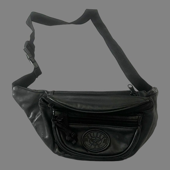 Vintage Flight Pax Black Faux Leather- Fanny Pack Belt Bag With Multiple Pockets