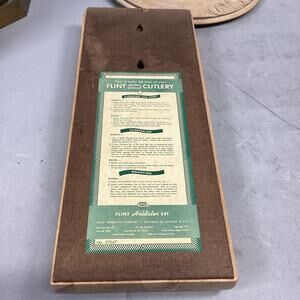 Vintage Flint Hollow Ground Knife Holder. Can hold up to 6 knives. In good used condition. Can hang on a wall. Measures 2”Hx15.5”Lx6.25”W