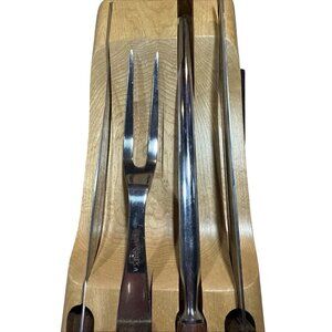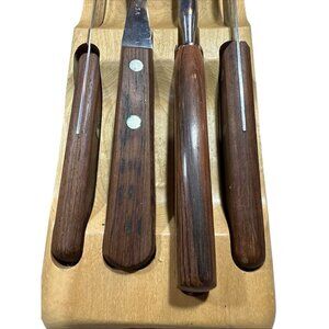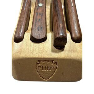 Vintage Flint Stainless Vanadium Carving Knife Set, Wood handles w/ case 4pc