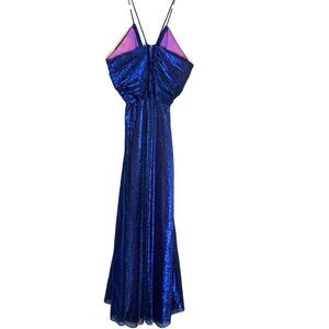 Vintage Flirtations Blue Metallic Sleeveless Fit & Flare Long Prom Dress Sz 7/8