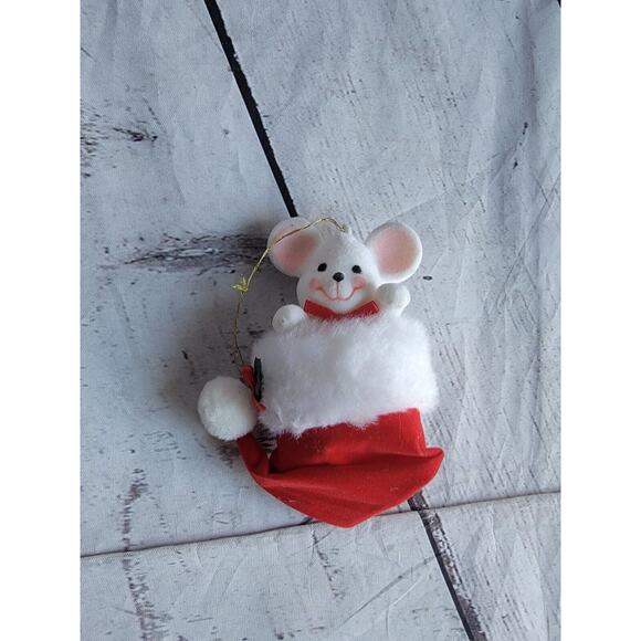 Vintage Flocked AVON Mouse Santa Hat Christmas Ornament ADORABLE in good condition