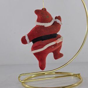 Vintage Flocked Blow Mold Santa Christmas Tree Ornament Mid Century Modern