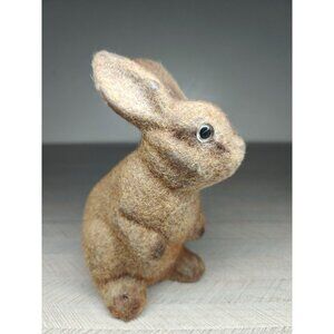 Vintage Flocked Brown Bunny Rabbit Coin Piggy Bank 6" Tall Hong Kong