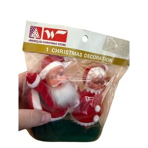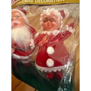 Vintage Flocked Dancing MR & MRS SANTA CLAUS Unused Original Package Christmas decor crafting cute old school 80s/90s. Deadstock. New in packaging.