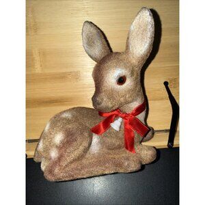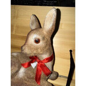Vintage Flocked Deer Fawn Coin Bank Fuzzy Spots Hong Kong 7" / Plug & Orig Tag. Condition is Used. Shipped with UPS Ground.