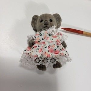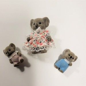 Vintage Flocked Koala Toy Family Miniature Mother Boy Girl Articulated Clothes