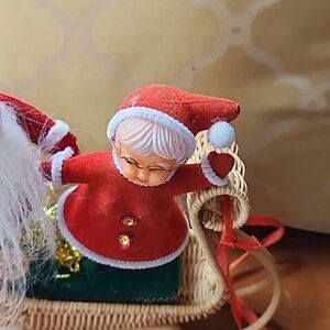 Santa Mrs. Claus Flocking Rattan Sleigh Mr. & Mrs. Claus Christmas Holiday
