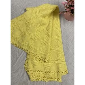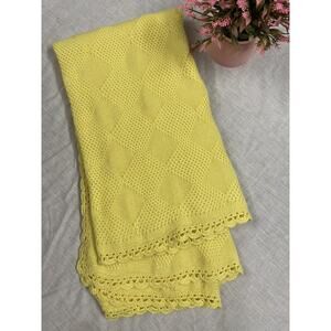 Vintage Flora Edge Waffle Knit Baby Blanket Light Yellow Lovey Neutral 47" X 37"