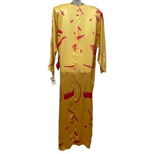 Vintage Flora Kung Bright Retro Print Hollywood Glam Silky Satin Dress NEW NOS