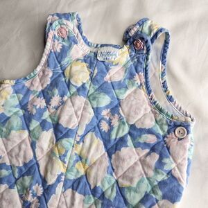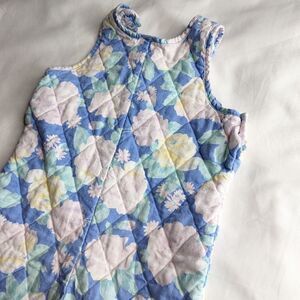 Darling vintage pastel floral one piece quilted jumpsuit. Snaps on the bottom, cute rosette buttons on the top.