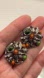 These are amazing vintage, round clip back earrings with a floral and leaf design. The beads are center of five individual flowers woven into the design. Secure fit of the hold of the clip in backs. Silver background. Dimensions are 1” x 1”. Secure fit with the clip on backs. Ships from a smoke free environment.