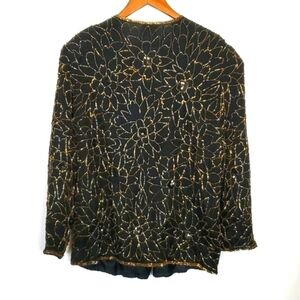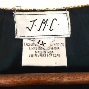 Vintage JMC black and gold beaded floral jacket. Shoulder pads (can be removed). Silk with polyester lining. Excellent condition. Size 1x.