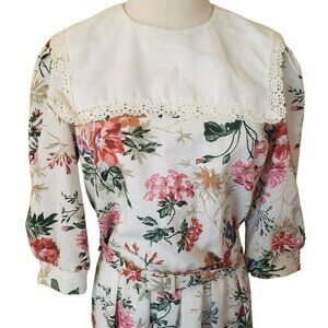 Vintage Floral Belted Dress Spring Garden Tea Party Cottagecore Sz 10