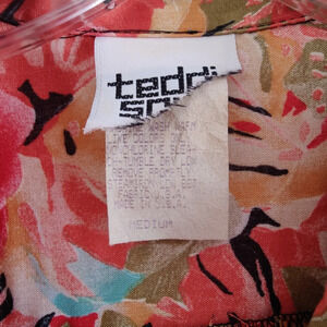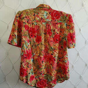 Vintage Floral Blouse / 80s / Red / Yellow & Green / Medium