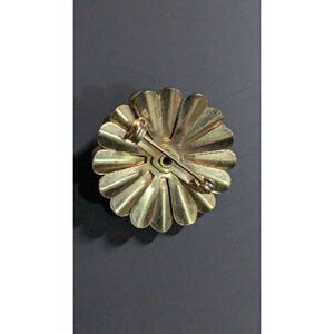 This brooch adds a retro charm, featuring a floral design with blue and clear rhinestones. A stunning accessory for vintage jewelry enthusiasts.