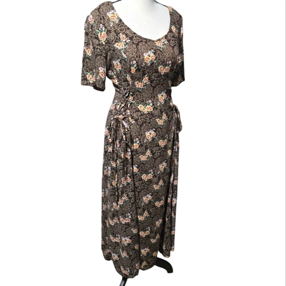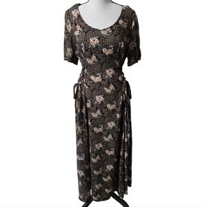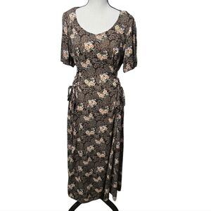 Vintage Floral Brown Tie Hips Front Midi Sundress