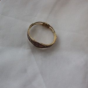 Light and delicate, this bangle features a floral and butterfly design on the facade. This bracelet opens on a hinge, making it easy to take on an off! Lovely!