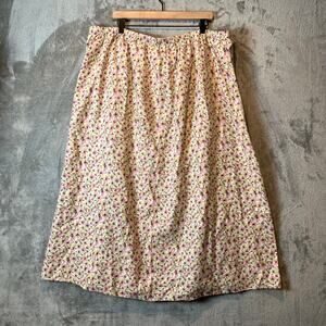 Vintage Floral Button Front Midi Skirt Cottagecore Boho Retro Linen Blend 3X