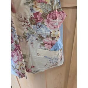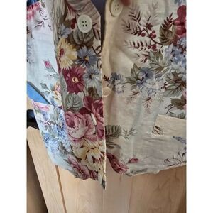 Vintage Floral Button-Up Vest W Pockets Multicolor Roses Lightweight