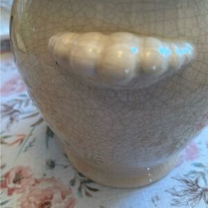 Elegant ceramic vase with a vintage floral design. Features charming handles and a crackle finish. Ideal for adding a touch of elegance to any room.