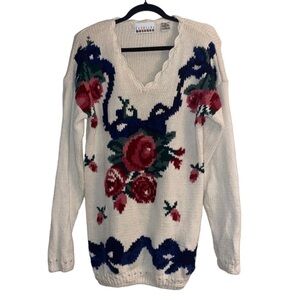Vintage Floral Chunky Knit Cottagecore Coastal Grandma Loose Knit 80s Sweater
