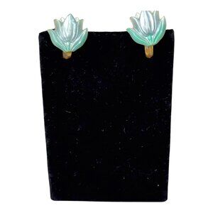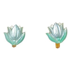 Vintage Floral Clip-On Earrings Pastel Blue Tulip 3d Flower Petite Small Girl