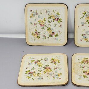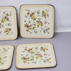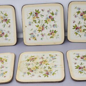 Vintage Floral Cork-Backed Square Coasters Set Of 6